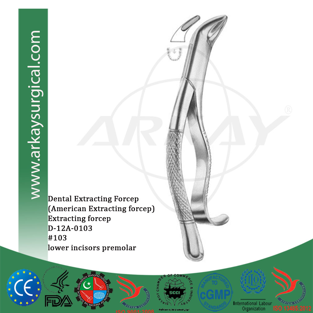 Dental extracting forcep american pattern #103 lower incisor premolars root extracting forcep