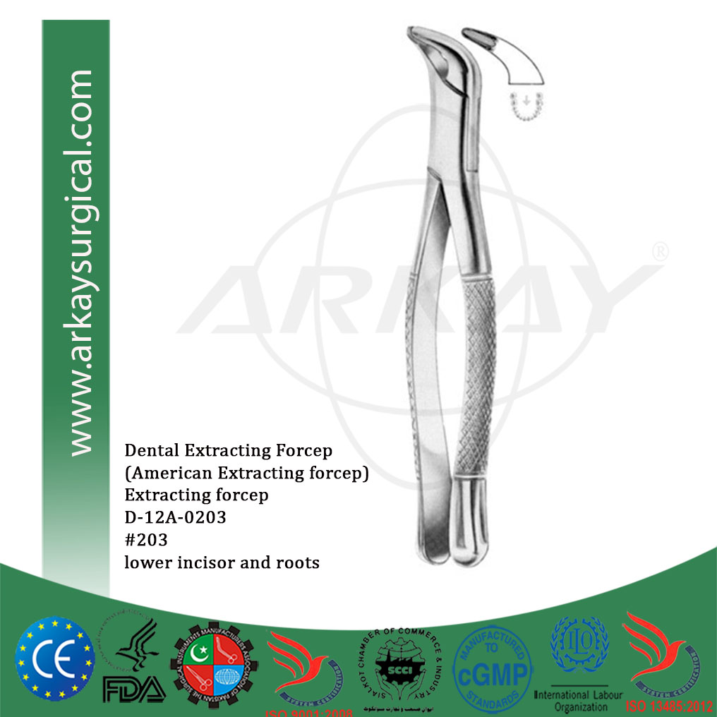 Dental extracting forcep american pattern #203 lower incisor and root extracting forcep