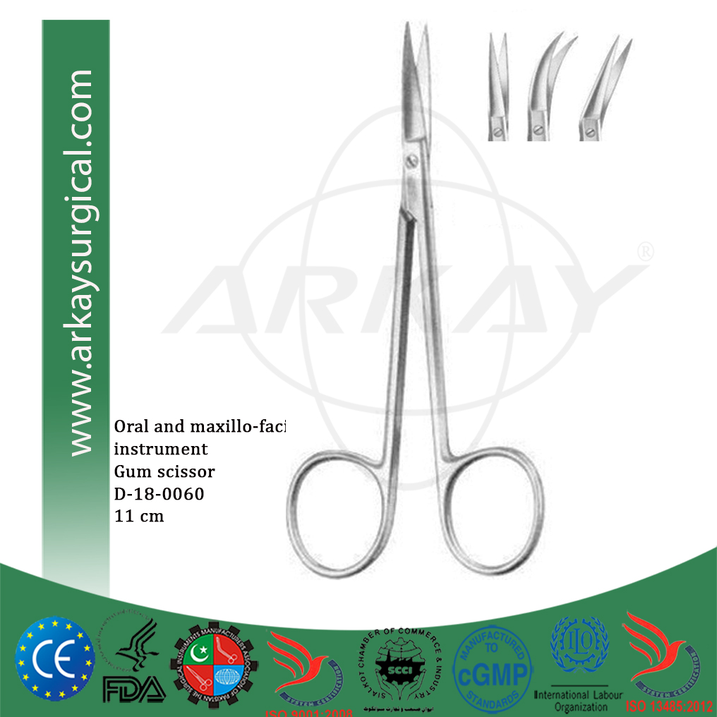 Oral and maxillo facial surgery instrument gum scissor straight 11 cm curved 11 cm