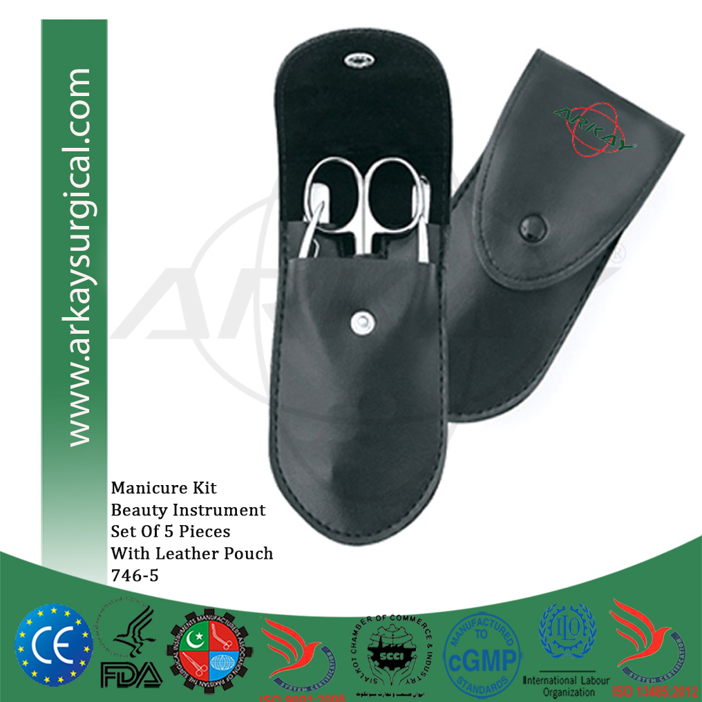 Manicure and Pedicure Kit 5 pcs Avaialable in various Combination Instruments And Leather Pouch Colors.
