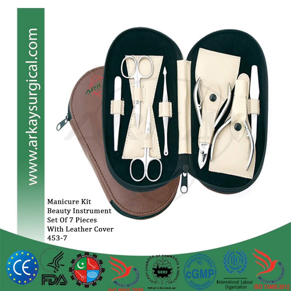 Manicure and Pedicure Kit 7 pcs Avaialable in various Combination Instruments And Leather Pouch Colors.