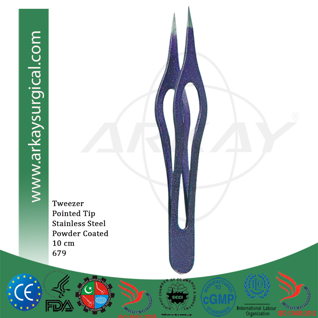 Professional precision and general tweezers Pointed tip powder color coated Size 10 cm