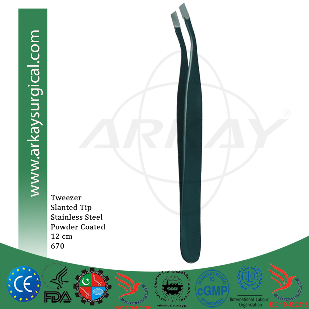 Professional precision and general tweezers slanted tip powder color coated Size 12 cm