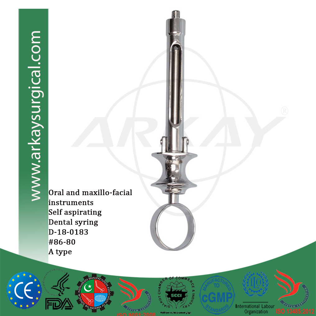 Oral and maxillo facial surgery instrument self aspirating dental syringe A type #86-80